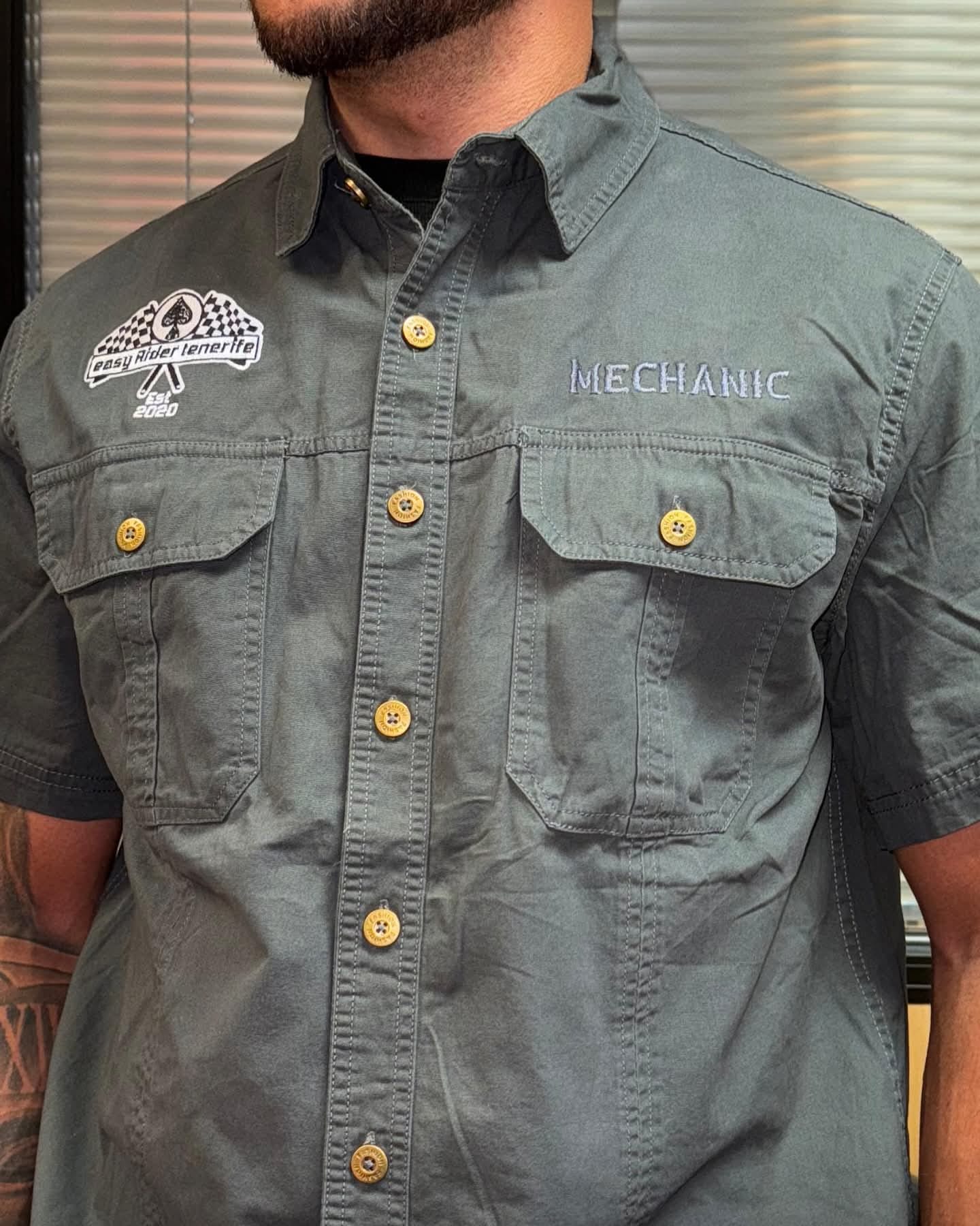 Get your hands dirty in style with the Easy Rider Tenerife Mechanic Shirt – where classic workwear meets island attitude. Inspired by the rebellious spirit of the road and the laid-back vibes of Tenerife, this shirt is made for grease, gears, and good times.