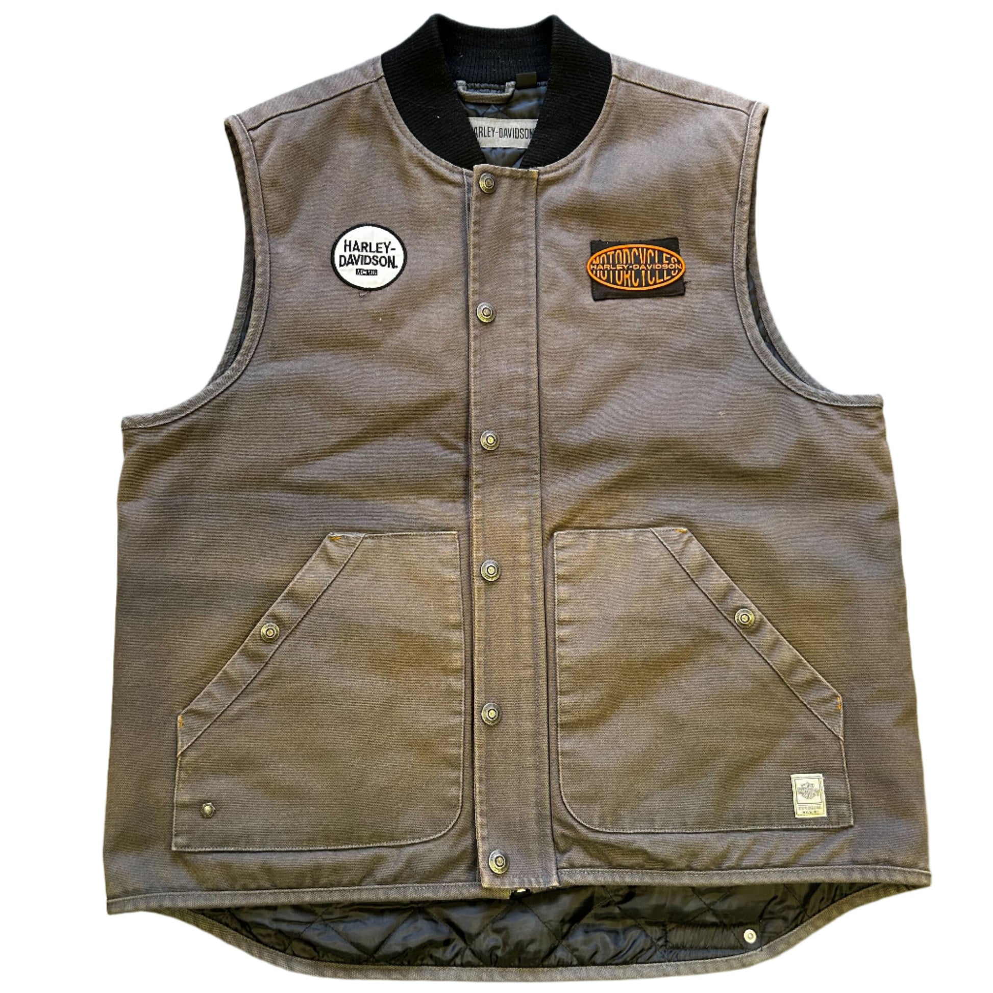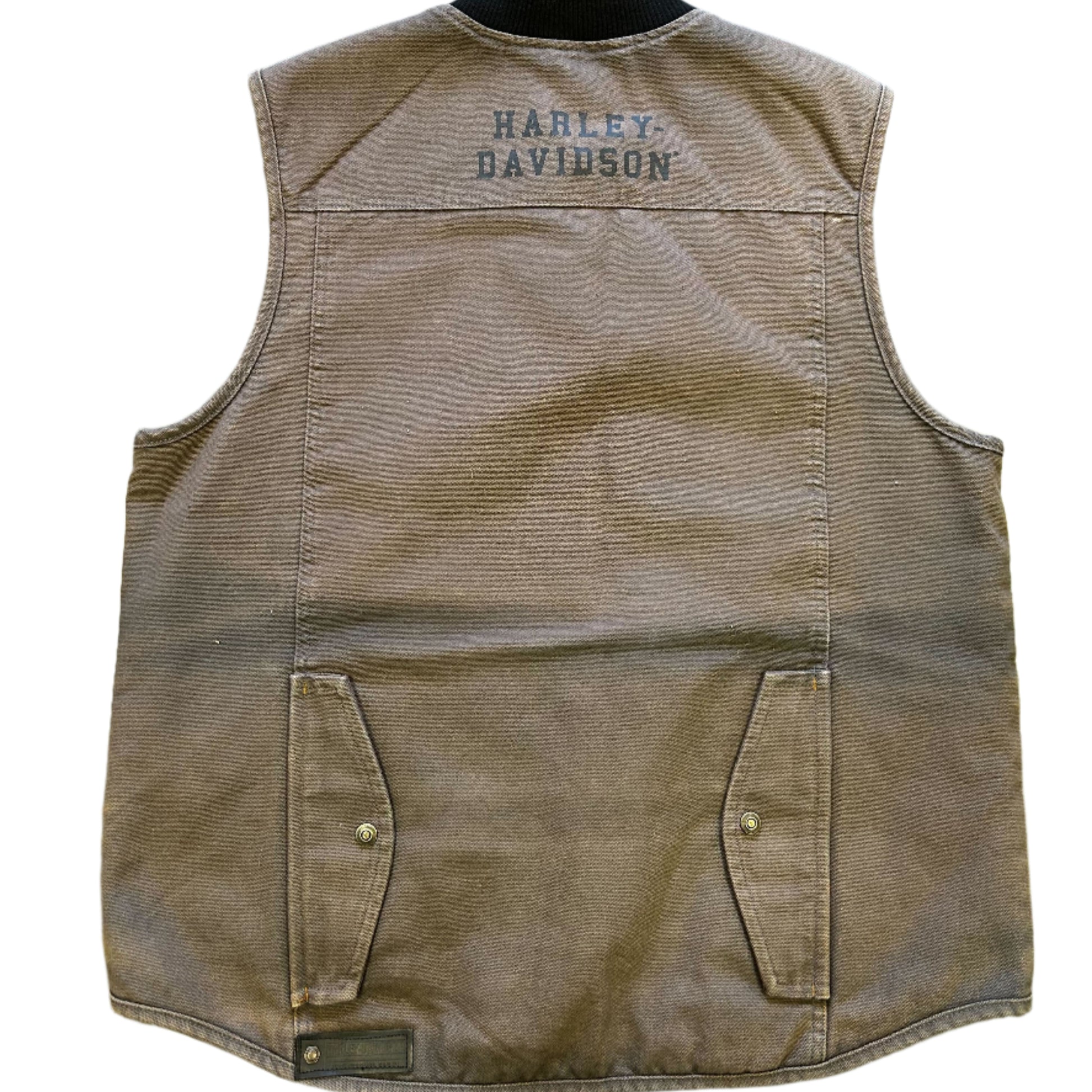 The Harley Davidson Workwear Vest offers durable construction designed for demanding work environments. Crafted to provide comfort and flexibility, this vest supports ease of movement while maintaining a rugged style. Ideal for those who need reliable outerwear that combines functionality with the iconic Harley Davidson aesthetic.