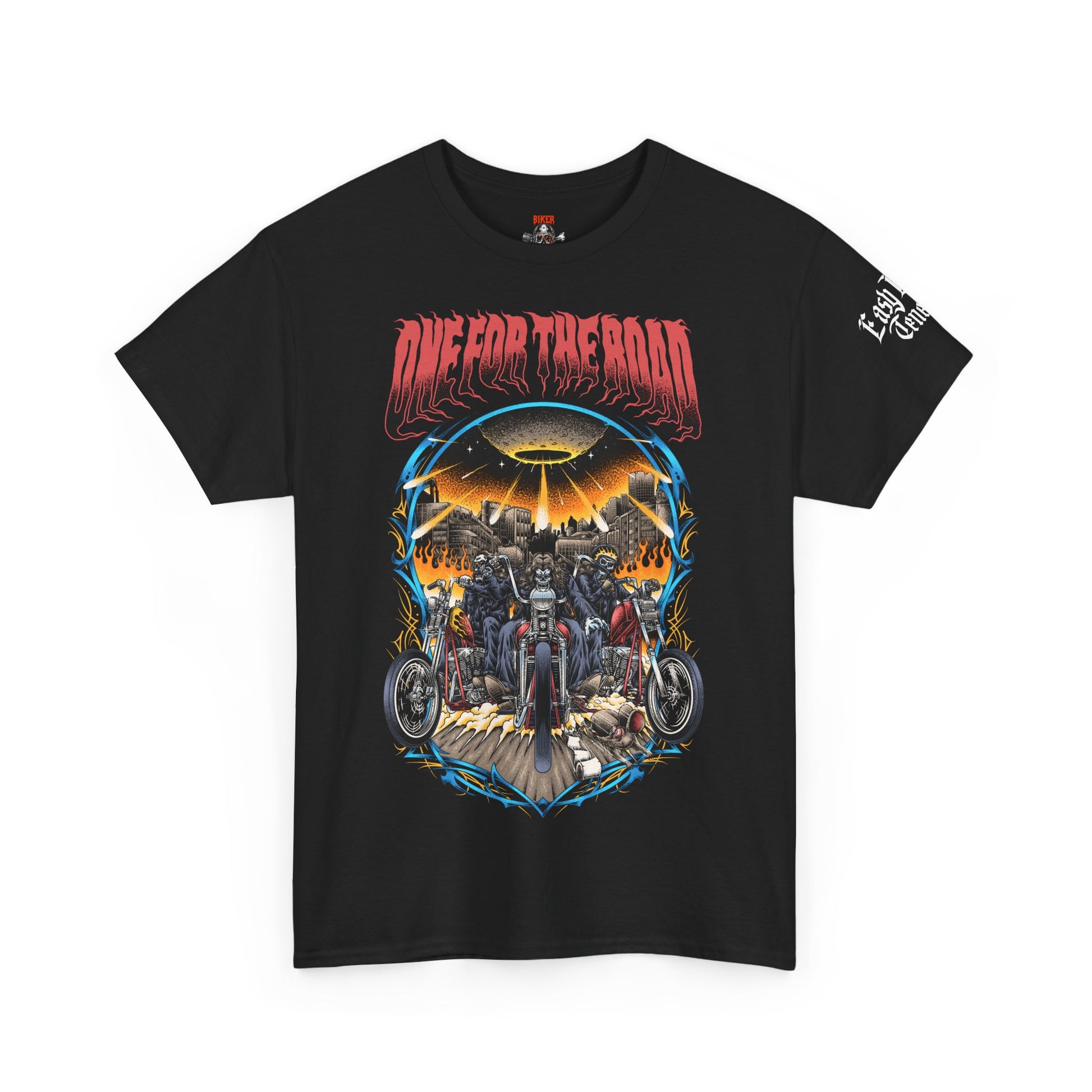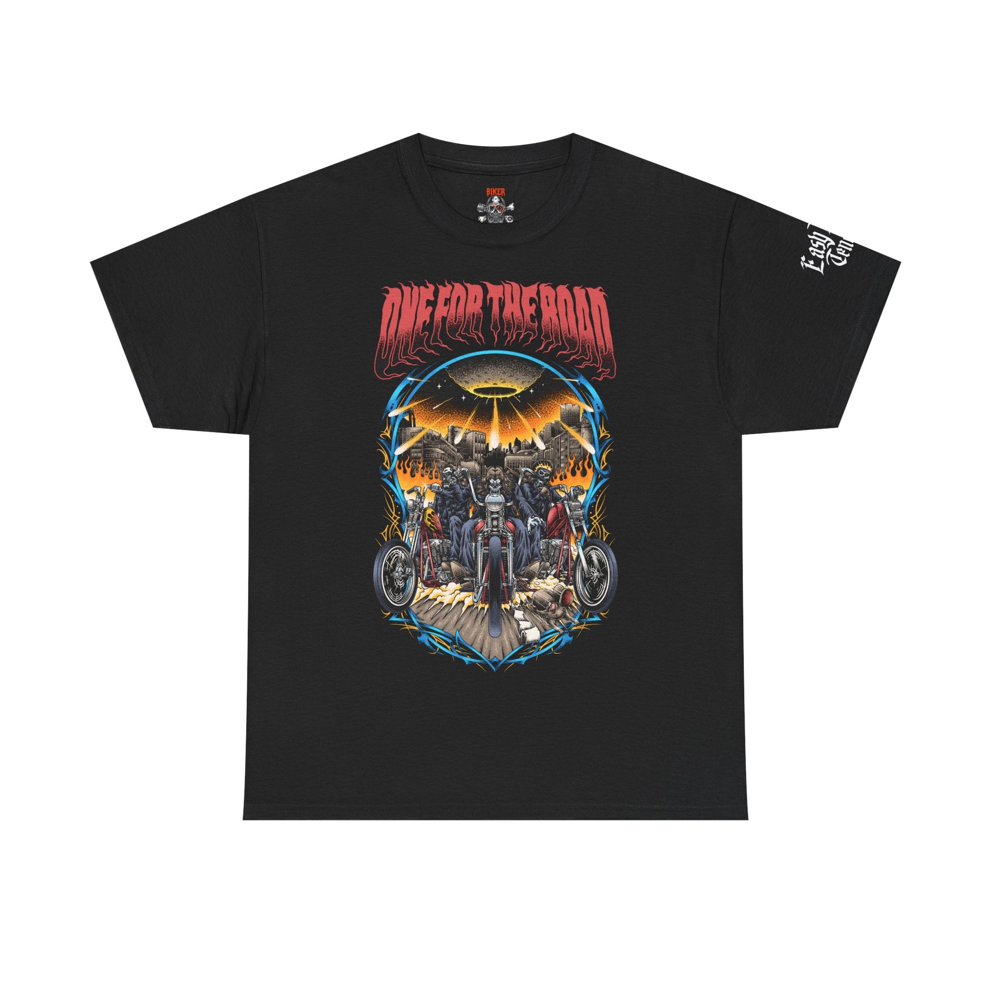 Fuel up and roll out. The One For The Road t-shirt throws it back to the golden era of biker culture with an old-school design that feels like it came straight off a sun-faded highway billboard. Bold lines, gritty attitude, and vintage soul—this one’s made for those who live life in the left lane.