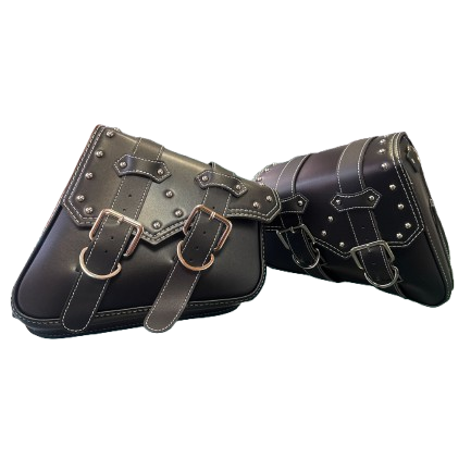 These black side bags with white stitching combine durability and style, designed to securely store your essentials during rides. Crafted with robust materials and detailed stitching, they offer reliable protection and a sleek, professional appearance to complement your motorcycle. Easy to install and access, these bags ensure convenience without compromising safety or aesthetics.